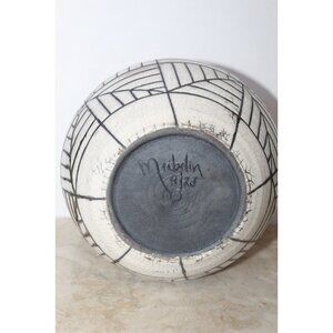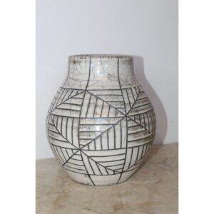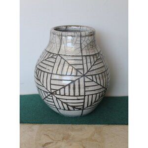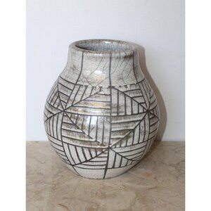 Raku Handmade Ceramic Pottery Vase White Crackle glaze Signed spider web design
