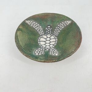 Raku Pottery Sea Turtle Marine Ocean Trinket Dish Signed C Matti Maui 5 1/4”