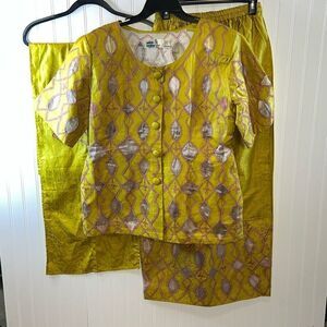 Rakus Fashion Skirt Suit With Scarf Women’s Size Medium Embroidered Sheer Button