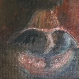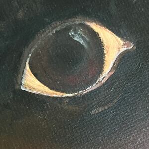 A bold original Raél Jero (RJ) Salley, MFA, PhD, signed oil painting portrait of a young black child on framed canvas.