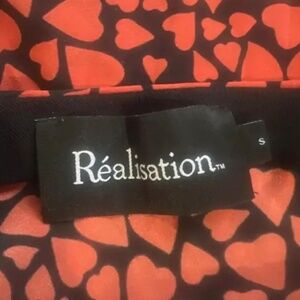 Slip style midi skirt with hidden elasticised waist band. Red heart pattern on black background. 100% silk. New/never worn. Size: S