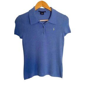 Ralph Laruen Sport Blue Wool Blend Polo Sweater Small
