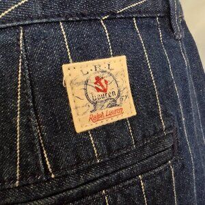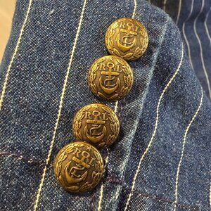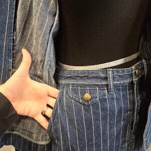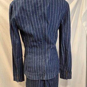 Ralph Laurel Jeans Blazer And Skirt Size 6 Blue With Pin Strips 100% Cotton