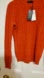 This is a men's orange Ralph Lauren Black Label cashmere cable-knit sweater. It is a crewneck style with long sleeves and a ribbed hem and cuffs. The sweater is a size S new with tags still attached.