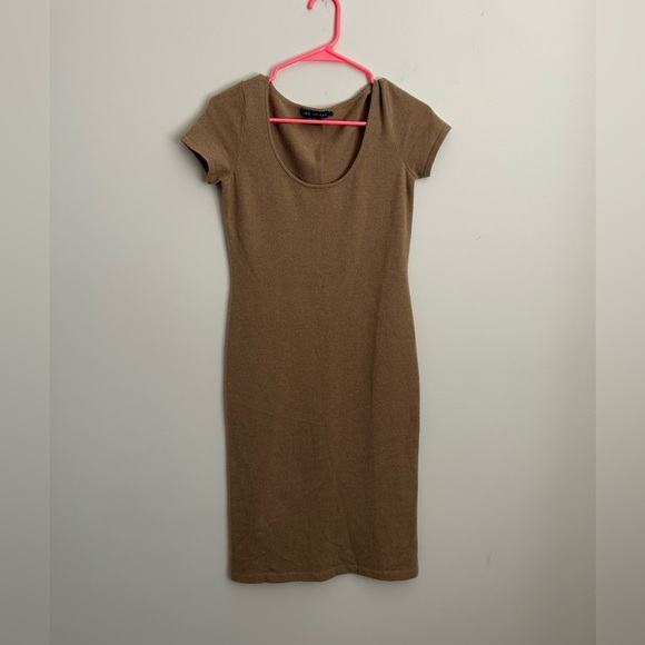 EUC 100% cashmere midi length dress from Ralph Lauren in a size Small. This dress is a beautiful tan color. Looks like there are 2 small repairs that have been made; as pictured. No other stains or flaws!