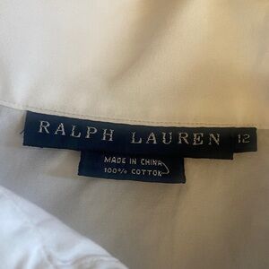 Ralph Lauren 100% Cotton White Ruffled Popover Blouse Size 12