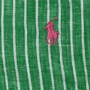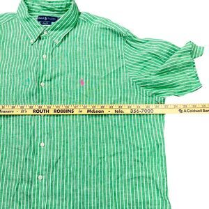 Ralph Lauren 100% Linen Shirt Mens 2XL Green Button Down Preppy