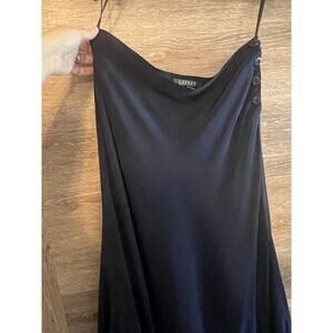 Ralph Lauren 100% Silk Maxi Skirt Size 10 Navy Blue Classic Timeless Capsule