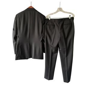 Ralph Lauren 100% Wool 2 Piece Suit 36R 32 x 29 Black Pinstriped Two Button