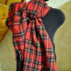 Ralph Lauren 100% Wool Scarf Red Plaid