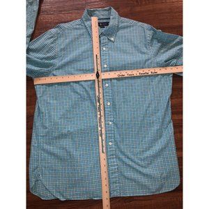 Ralph Lauren 120s 2 Ply Button Front Check Teal/Orange Shirt Mens Size XL