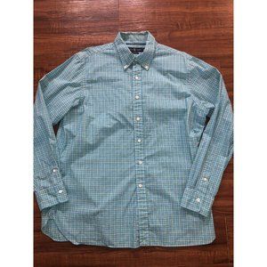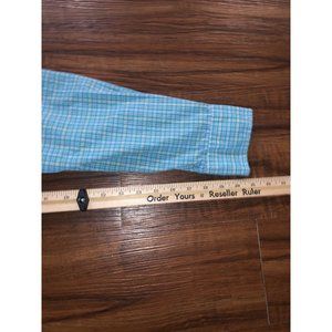 Ralph Lauren 120s 2 Ply Button Front Check Teal/ Orange Shirt Mens Size XL Long Sleeve.