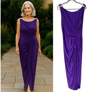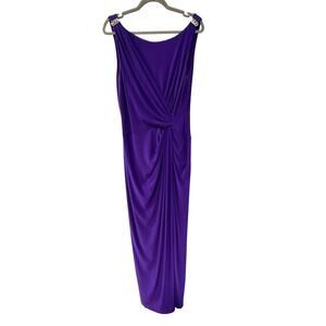 Ralph Lauren 14 Bejeweled Evening Gown Sleeveless Long Maxi Dress Purple Crystal