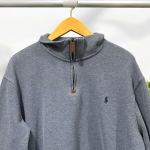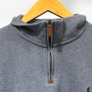 Ralph Lauren 1/4 zip blue pullover with leather pulls size XXL