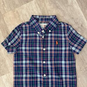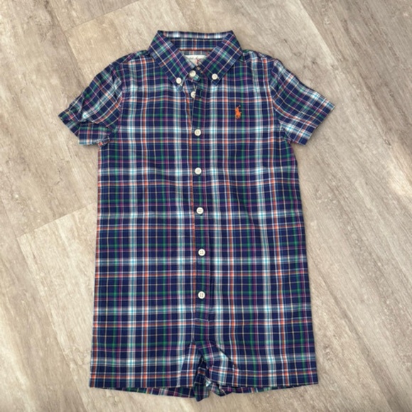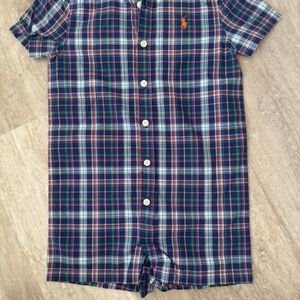 Ralph Lauren 18 Months Baby Boy Romper Short Sleeve Logo Blue Plaid NWOT
