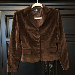 Ralph Lauren 1980s Brown Cotton Velvet Equestrian Jacket Blue Label Vintage