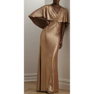 Ralph Lauren $295 Metallic Cape Overlay Maxi Dress Gown Sz 10 NWT