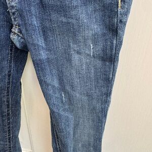 Worn 3x, has some piling and wear as shown. They are distressed jeans by nature