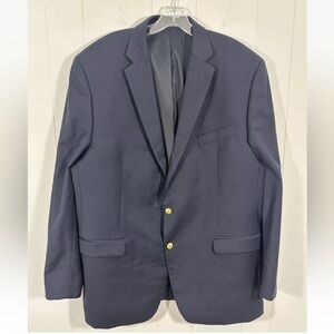Ralph Lauren 46 L University Club Vintage Blue Wool Gold Button Blazer Suit
