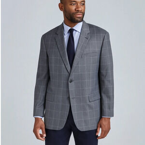 Ralph Lauren 50L Big & Tall Wool Blazer Sport Coat Gray Windowpane Plaid Jacket