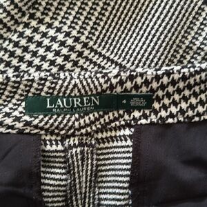 Ralph Lauren black and white gingham ankle cropped Stylish checkered design. Comfortable fit. Ideal for formal occasions. Size 4 (inseam does have a few pealing of fabric can’t see on picture)