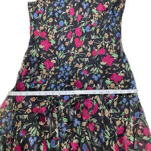 Vintage 90s Lauren Ralph Lauren 90s Does 30s Women’s Black with Vibrant Blue, Yellow, Violet, Green Floral Print Full-Lined Tank Sleeveless Gored Skirt With Handkerchief Hem Floaty Chiffon Sun Maxi Dress Size 2P Petite. This dress is preowned and in very good condition. The length of this dress is 45”.
