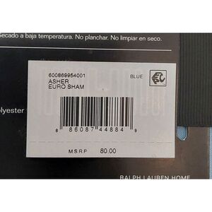 Ralph Lauren ASHER Blue Cotton Poly Fiberfill Quilted European Euro Pillow Sham
