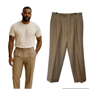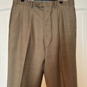 Ralph Lauren Academia Mens Dress Pants 35 x 32 Brown Glen Plaid100% Wool Pleated
