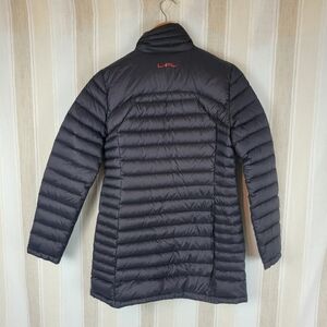Does have some small marks throughout (see photos), longline longer length, down and feather fill, double zipper front, Lauren Ralph Lauren, Lauren Active.