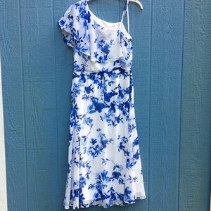 Ralph Lauren Adaleide Floral One Shoulder Midi Dress Cold White Blue Ruffle 12