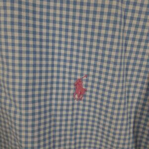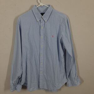 Ralph Lauren Adult Mens L Blue White Check Long Sleeve Button Up Shirt Pink Pony