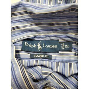 Ralph Lauren Adult Mens XL Blue Striped Classic Fit Long Sleeve Button Up Shirt