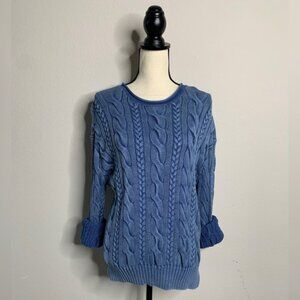 Ralph Lauren Ash Wash Faded Vintage Blue Cable Knit Crewneck Sweater