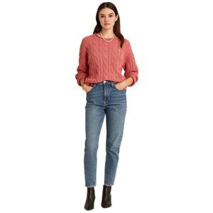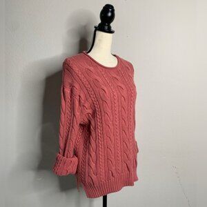 Ralph Lauren Ash Wash Faded Vintage Pink Berry Cable Knit Crewneck Sweater