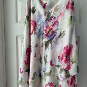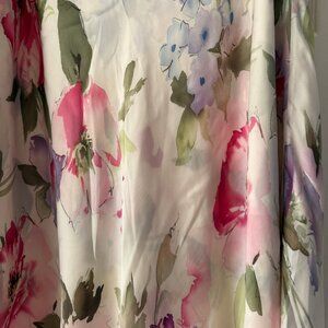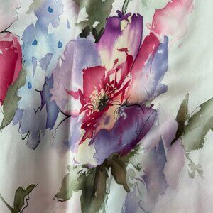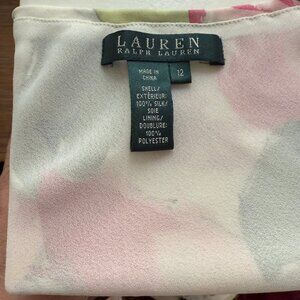 Chic asymmetrical skirt by Ralph Lauren. Features pink, purple, and green floral design on a cream base. Perfect for stylish outings. Beautiful fabric!