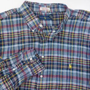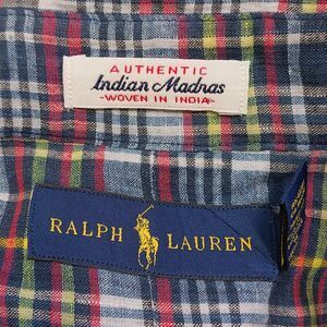 Ralph Lauren Authentic Indian Madras Cotton Shirt Men's Size 3XB Plaid Blue L/S