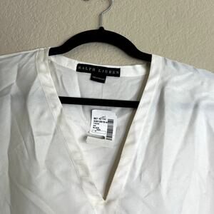 Elevate your wardrobe with this Ralph Lauren shirt top for women in size 8. Crafted from 100% silk, this elegant white top features long sleeves and a flattering V-neckline. Its pullover style offers ease of wear, making it suitable for both professional settings and casual outings.