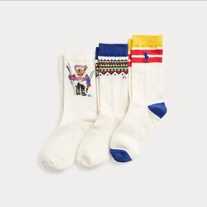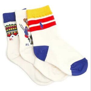 Ralph Lauren Baby 0-6 Mo Bear Crew Socks, Pack of 3 Assorted NWT