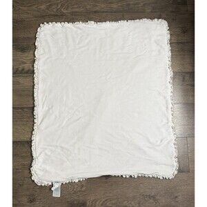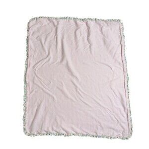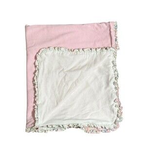 Ralph Lauren - Baby Blanket - Striped + Floral Ruffle Trim - Cotton - Pink + White - 26 x 30