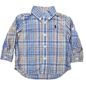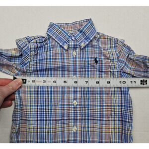 Ralph Lauren Baby Boy 9 Months Short Sleeve Blue Yellow Plaid Button Up Shirt