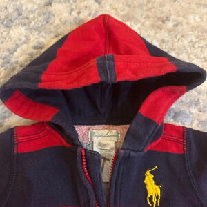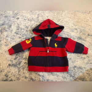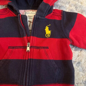Ralph Lauren Baby Boy Hoodie Red Navy Striped Zip-Up Sweatshirt Size 3M