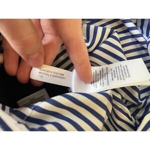 Lovely baby Ralph Lauren set for 24 months. Blue striped poplin button up shirt with a white collar. Ralph Lauren monogram stitching on the sleeve. Matching pleated cuffed navy shorts the button to attach to the shirt.