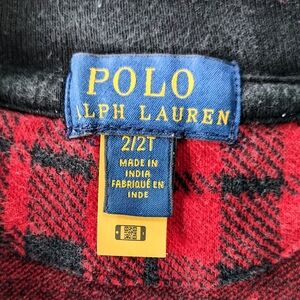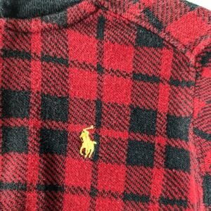 Ralph Lauren 2T Stylish red plaid pullover sweater with a quarter-zip design. Features a classic Signature embroidered Pony at the left chest, Mock neck,Long sleeves with ribbed cuffs, Ribbed hem. 100% Cotton. Gently Loved. Great Condition!