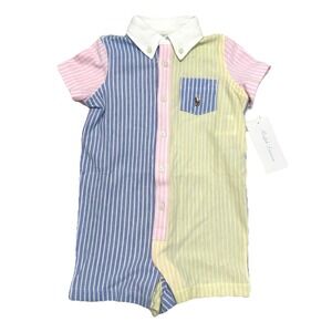 Ralph Lauren Baby Boys 6M Colorblock Shortall Bodysuit Short Sleeve NEW preppy