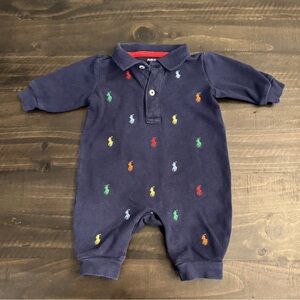 Ralph Lauren Baby Boys Polo Onesie Size 3M Navy Multi-Color Pony Embroidered