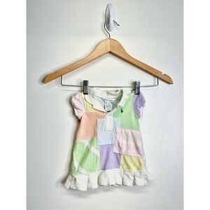 Ralph Lauren Baby Dress 3 Months Patchwork Multicolor Collared Pastel
