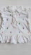 It fastens in the front with three buttons and ruffles around the buttons