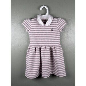Ralph Lauren Baby Girls Striped Jersey Dress Pink And Gray Striped Size 18M