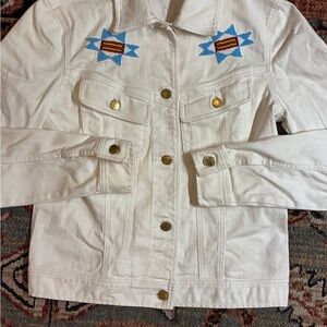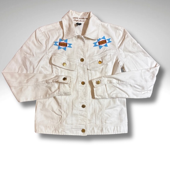 Ralph Lauren Beaded Embroidered Southwestern White Denim Jean Jacket Small