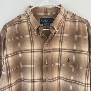 Ralph Lauren Beige Plaid Flannel Men's Large Classic Fit